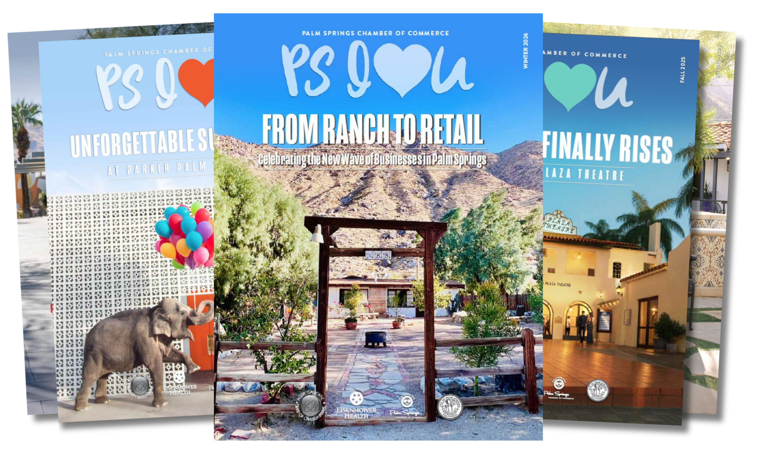 PS I ❤️ U is a distinctive, 42-page quarterly publication that highlights the dynamic business community of Palm Springs and the Coachella Valley. Each issue reaches over 33,000 residents and 2,000 local businesses by mail, while the digital edition extends its reach even further—connecting more readers to the local stories and insights that shape our community.